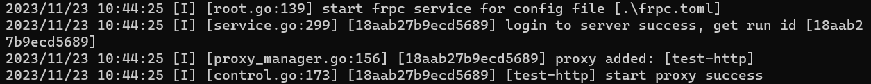 ./frpc -c ./frpc.inifrpc启动成功实例如下: